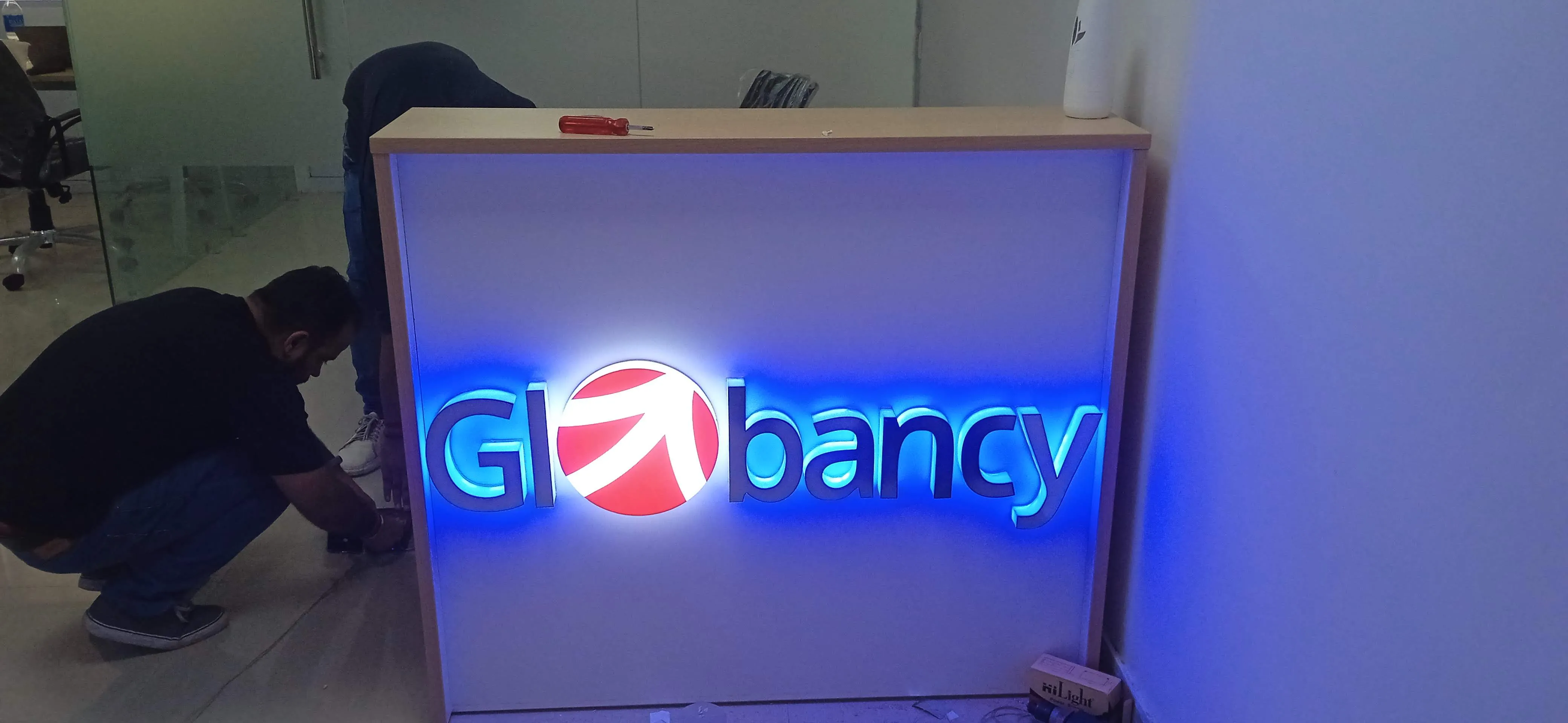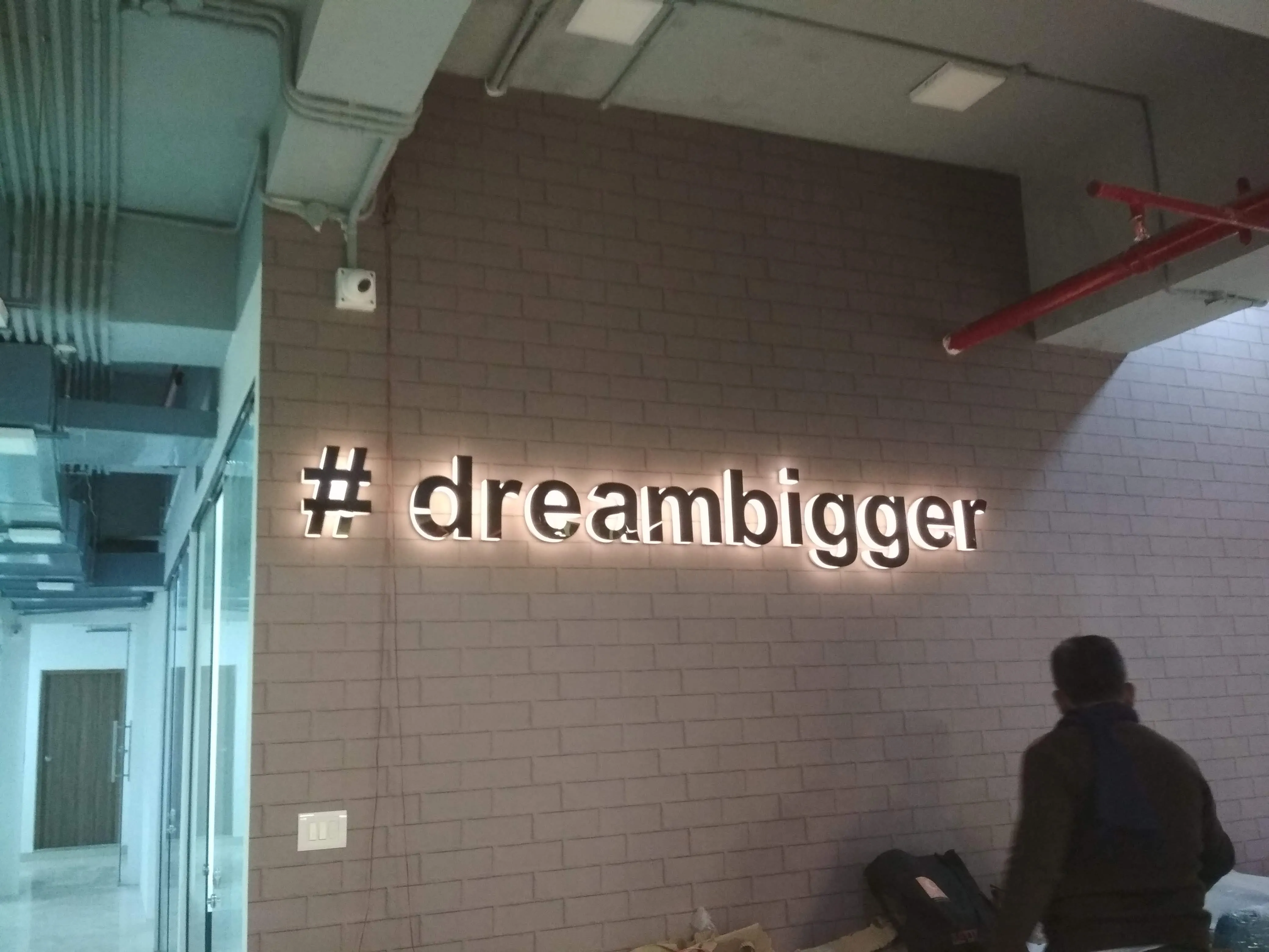 Office Wall Branding with Acrylic Letters with LED light on wall