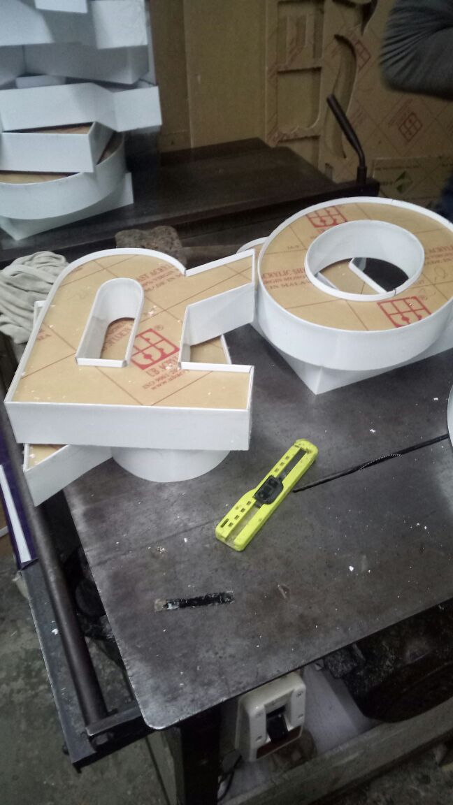 Router cutting ACP as base with Acrylic LED Signage Board, ACP base is cutting for small Letters, LED Used for lighting, price on size and design, Range 800 to 1000/-