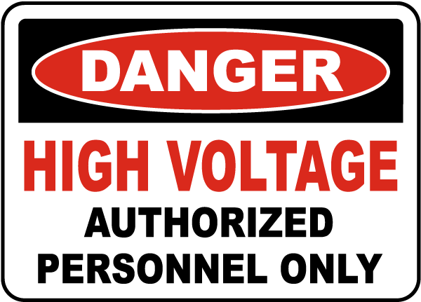 • Electrical Rooms: “Danger – High Voltage”, “Authorized Personnel Only”