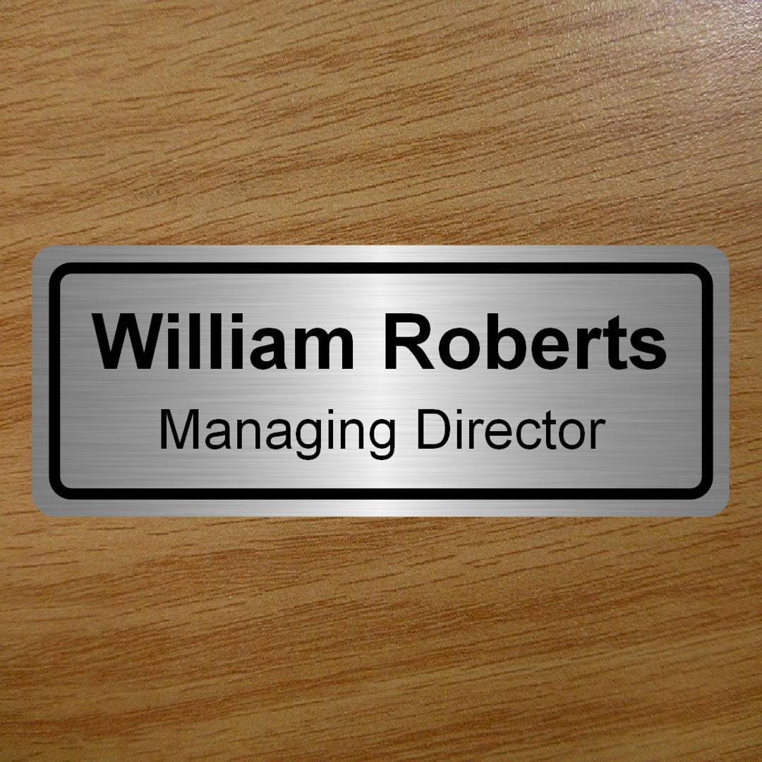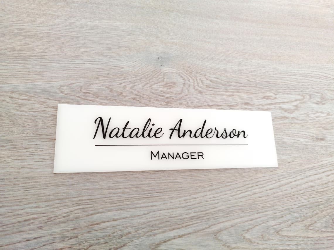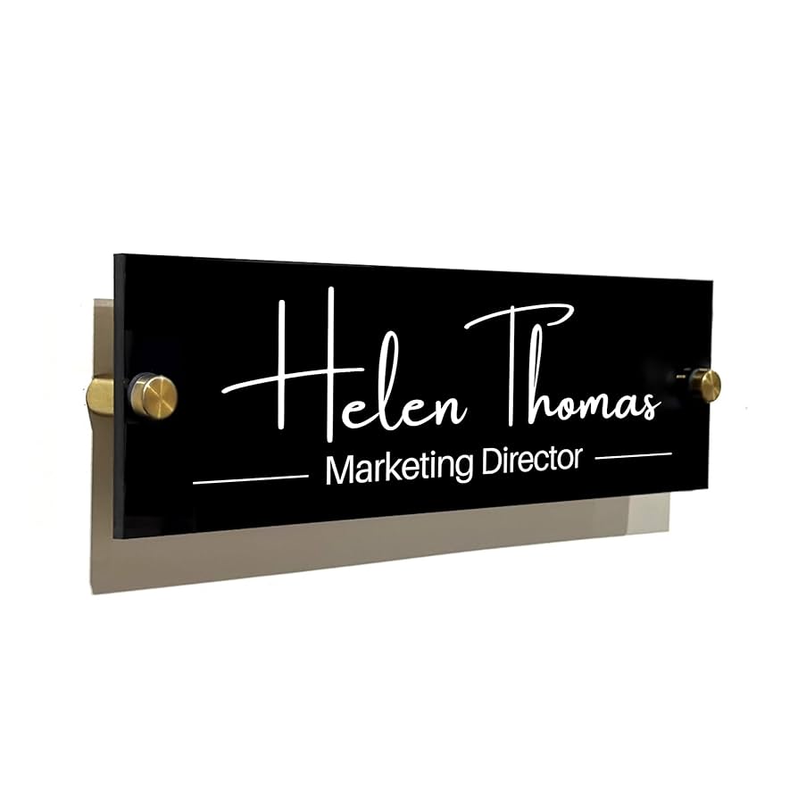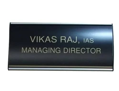 Office Door Plates – Featuring job titles, designations, and company logos.